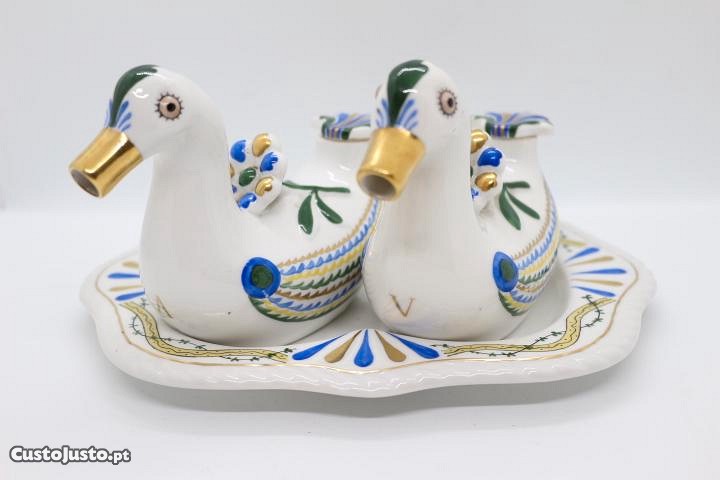 Galheteiro Patos Floral Decoração Loiça de Viana Vista Alegre 1924
