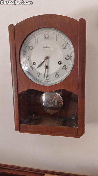Relógio antigo de parede com dois toques, Westminster e Ave Maria de Fátima . Em perfeito estado de conservação e a funcionar muito bem. Dá horas meias horas e quartos. Posso entregar zona de Cascais gratuito.