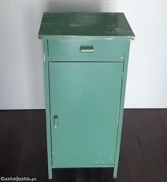 Retro Vintage Antiga Mesa Cabeceira Madeira Alta Verde Funcional