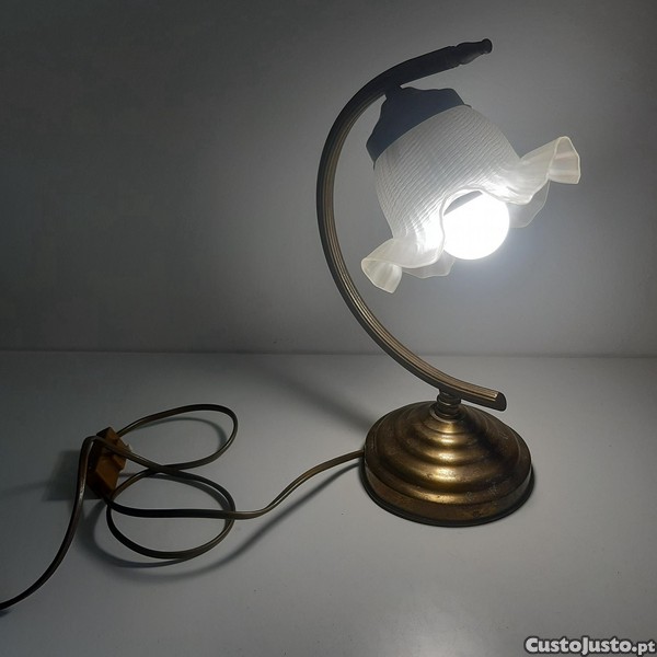 Candeeiro de mesa de cabeceira em latão. Interruptor no fio. 26cm de altura.