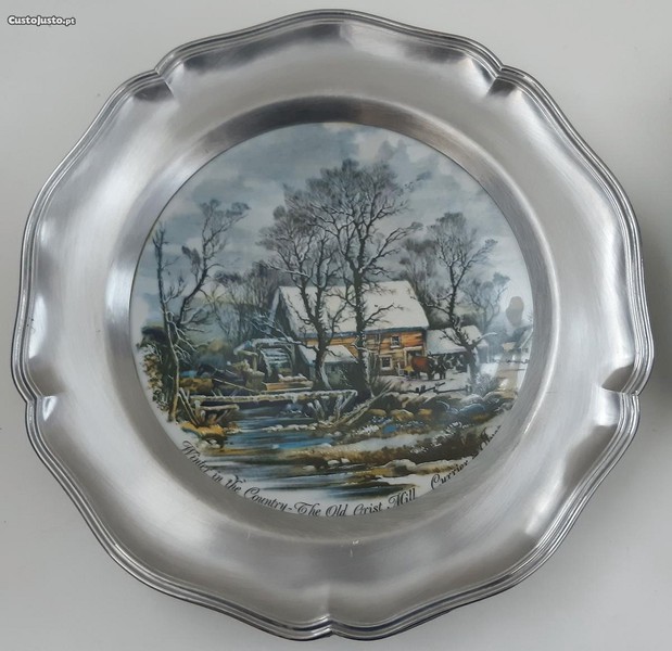 Retro Vintage Antigo Dois Pratos 22cm Porcelana Estanho Decor Pendurar Parede
