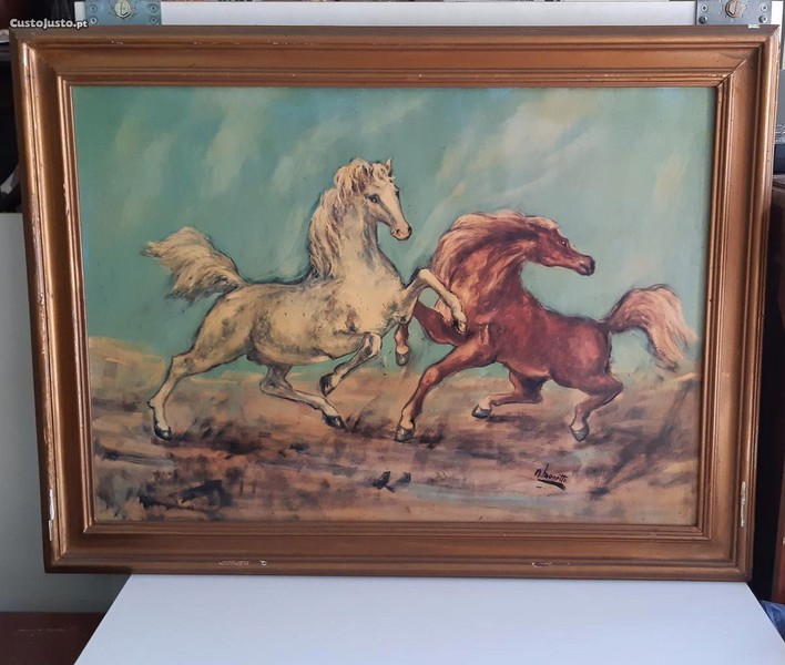 Preço: 20 €Retro Vintage Antigo Quadro 80x60cm Gravura Dois Cavalos - N. Bonetti