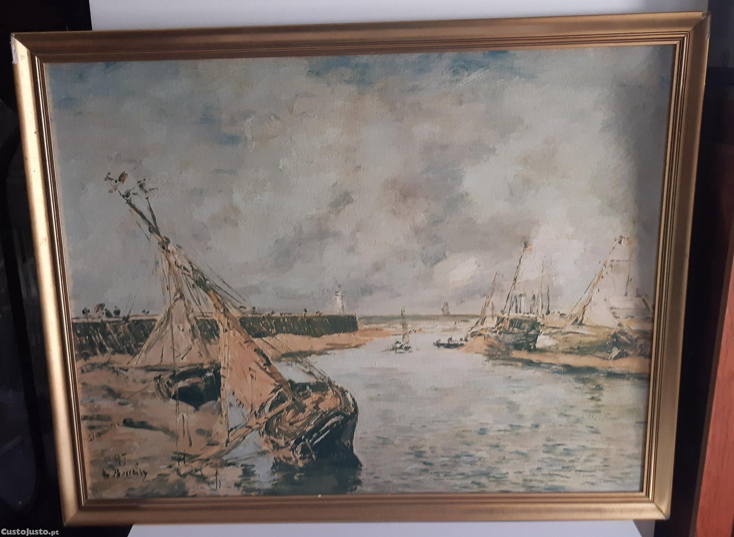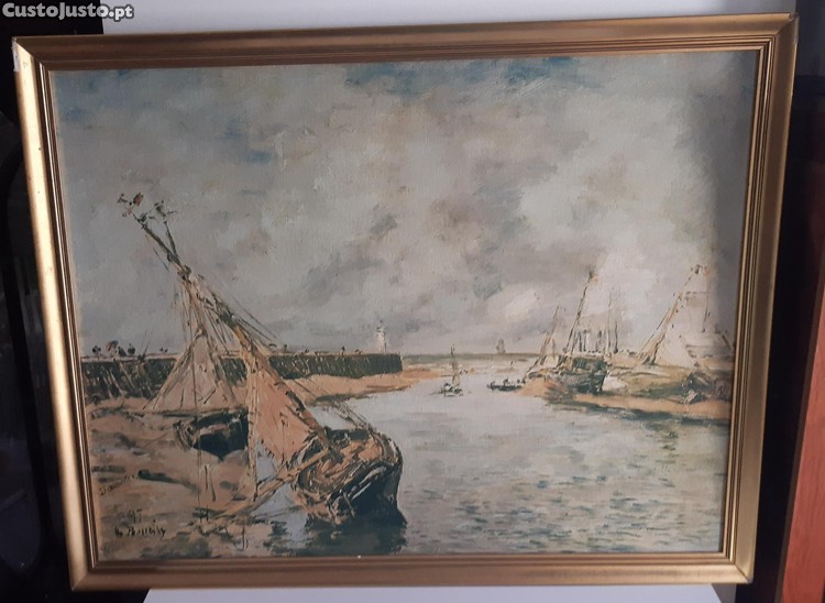 Preço: 25 €Retro Vintage Antigo Quadro 84x66cm Gravura Maré Baixa de Eugène Boudin