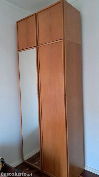 Dois roupeiros com interiores exactamente iguais. Um com o espelho do lado esquerdo e o outro com o espelho do lado direito, o que permite colocá-los lado a lado de forma harmoniosa.