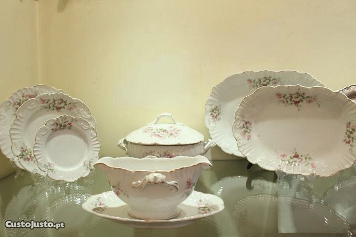 Serviço de Jantar 12 pessoas porcelana Moldada Vista Alegre Floral 1881 completo muito antigo em excelente estado com todas as peças (80 peças) conforme fotos
