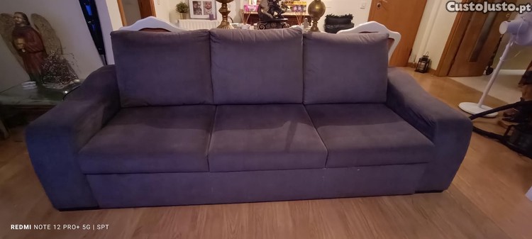 Sofá com cama de três lugares cor cinza ,com pouco uso. Motivo venda de casa.