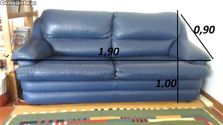 Sofá-cama de couro azul escuro de 3 lugares. Pouco usado, em muito bom estado. Ideal para quem procura uma peça confortável e versátil para a sala de estar, escritório ou alojamento turístico. Foi feito por encomenda. Pele genuína, grossa e resistente, de alta qualidade. Fácil de limpar. Vende-se sem colchão. Negociável.