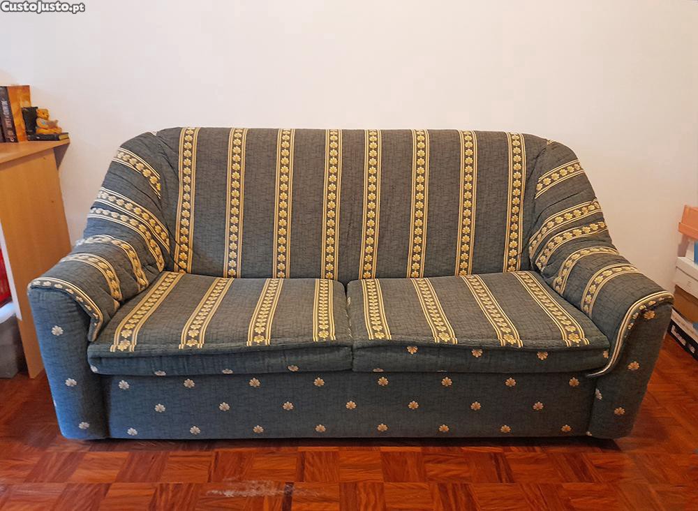 Preço: 45 €Sofá Cama Tecido Verde Amarelo + 2 Capas + 2 Almofadas