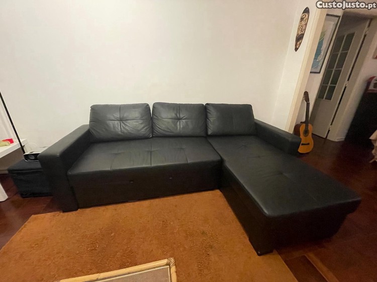 Preço: 200 €Sofá de canto sintético preto com compartimento de arrumação