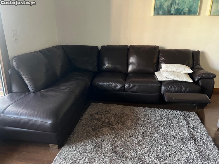Sofá em pele castanha Divani&Divani, com chaise longue e lugar relax - Usado