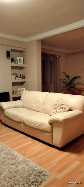 Sofá IKEA de 3 lugares em pele cor creme claro