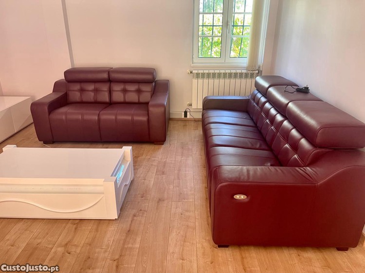 Sofás bordeaux. 3 lugares + 2 lugares. Como novo.