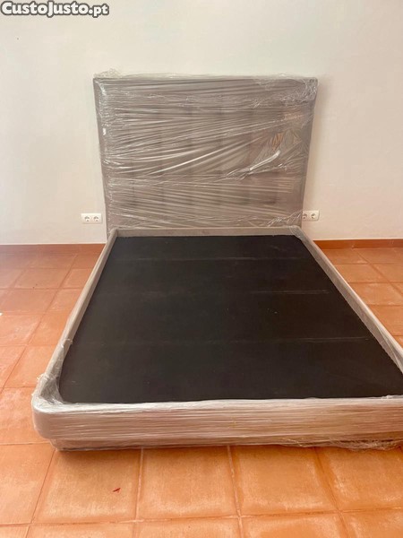 Sommier de casal + Cabeceira em tons de castanho. Como novo.
