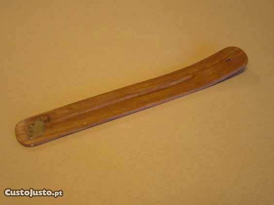 Suporte para incenso em madeira natural com uma imagem de metal de liga de latão incrustada. Feito artesanalmente em madeira exótica asiática, este suporte de varetas de incenso proporciona uma forma limpa de efetuar a queima de incensos. O seu agradável estilo rústico, orgânico e étnico, faz dele uma peça ornamental muito decorativa. Dimensões: 29x4.5cm. Barato para desocupar. Negociável, vendo pela melhor oferta.