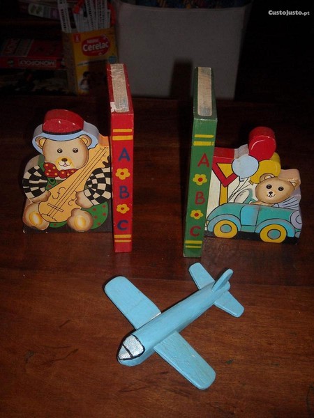 Suportes para livros de criança antigos. Em madeira pintada. Bom estado, apenas com algumas marcas do tempo.