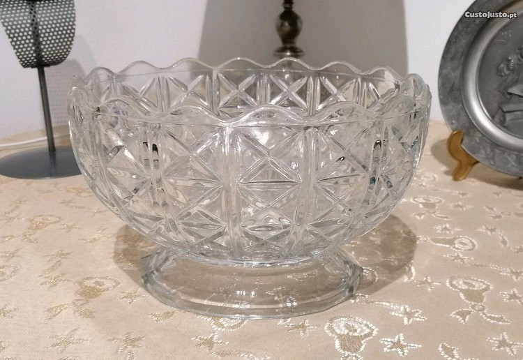 Preço: 40 €Taça centro de mesa vintage em vidro trabalhado, anos 60/70