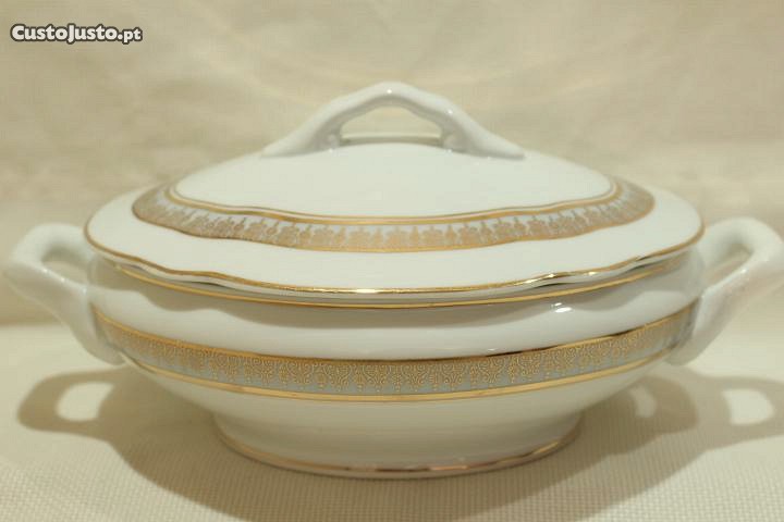 Preço: 120 €Terrina Vista Alegre Branca e Azul Ouro 1947