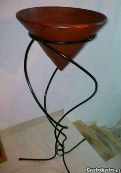 Vendo bonito suporte em ferro tripé com vaso em forma de cone como novo, por motivo de mudança de casa. Entrego em mão na zona de Bobadela e arredores.