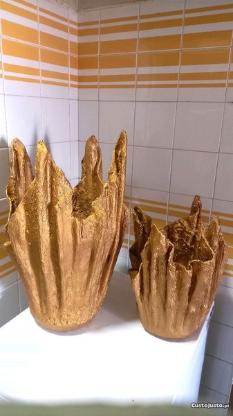 Preço: 30 €Vasos/Caspô em cimento dourados