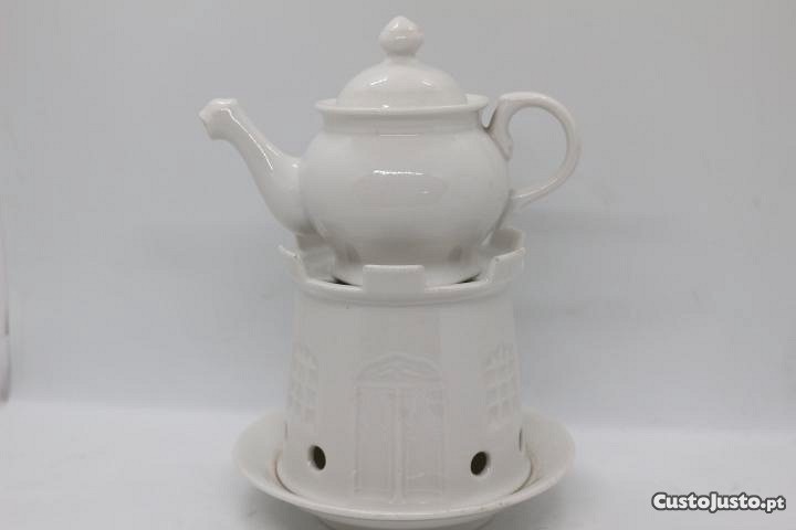 Bule de noite ou veilleuse em porcelana branca da Vista Alegre. Base com litófano. Modelo Castelo muito antiga completa conforme fotos