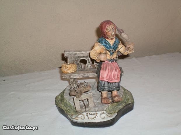 Figura artística de senhora, com a roca a fiar o linho. Tem o cesto dos novelos e a dobadoura perto dela. Todos os pormenores estão perfeitos. IMPECÁVEL. Uma linda e RARA peça para decorar espaços de Turismo Rural e/ou outros similares. Também interessante para coleccionadores. O preço não inclui despesas de envio. Pode ser entregue em mão, dependendo da zona.