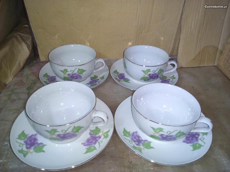 Preço: 10 €4 chávenas de chá em porcelana c/cachos de uvas novo