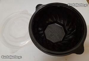 6 taças plástico resistente, com tampa, em cor preto.
