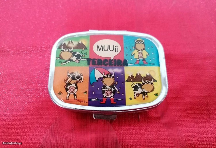 Bonita caixa para medicamentos com compartimento duplo e com espelho.