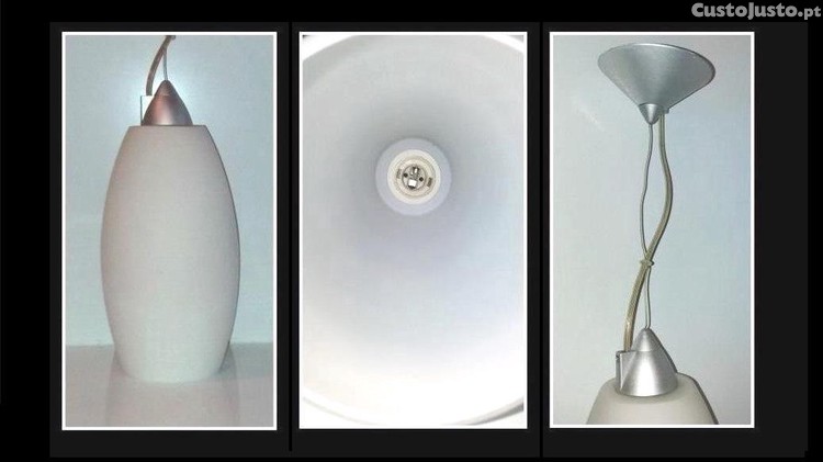 Candeeiro de Tecto, globo em vidro branco fosco que proporciona uma luz mais suave e confortável, cabo extensível para maior comprimento a partir do tecto, com lâmpada de 60W, A350 x D180mm, excelente estado.
