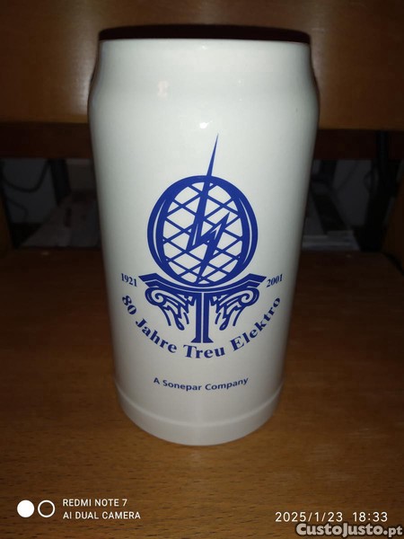Preço: 4 €caneca de cerveja alemã 80 Jahre Treu Elektro (1 litro)