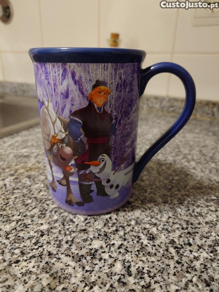 Caneca grande de louça com 13,5 cm de altura e 9,5 cm de diâmetro.