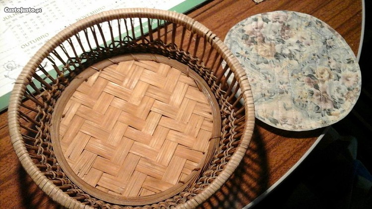 Cesto em vime com pano, diâmetro 23 cm em bom estado.