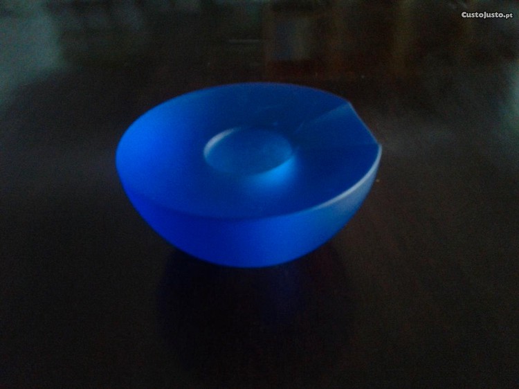- Cinzeiro artístico azul, da Marinha Grande, em vidro fosco, aberto à mão. Diâmetro 12cm e altura 6cm. 8EUR