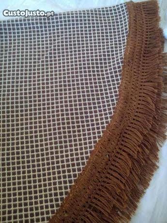 Cobertor redondo com franjas, cor castanho e branco, com 1,80 m de diâmetro. Preço unitário. 2 un. 10EUR.