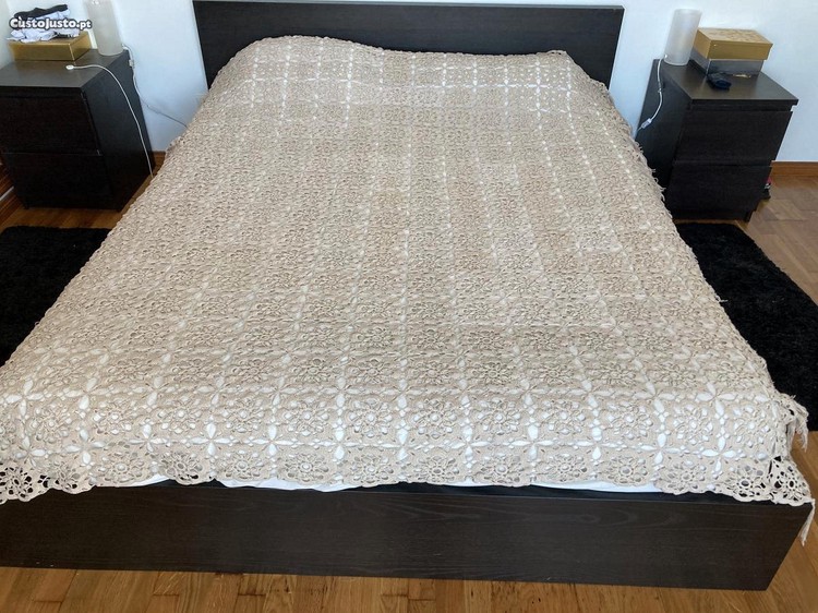 Vendo colcha antiga em renda feita à mão para cama de casal em cor creme/bege.