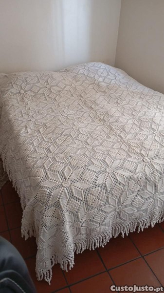 Colcha única, original, grossa e pesada, muito antiga feita em croché à mão roseta a roseta, com terminação em rabinho de porco. Nunca usei foi herança, está nova. mede 2,20m /2,70m.