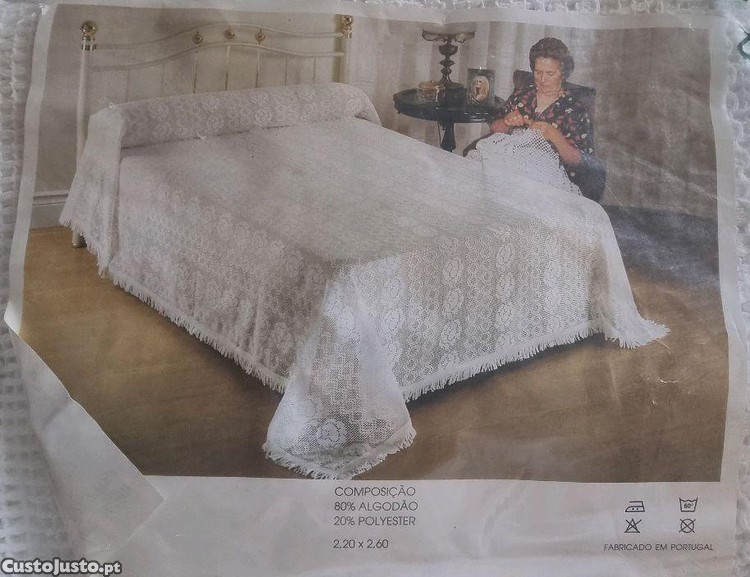 Colcha de renda branca, nunca usada, dentro da embalagem original. 80% algodão, 20% poliéster