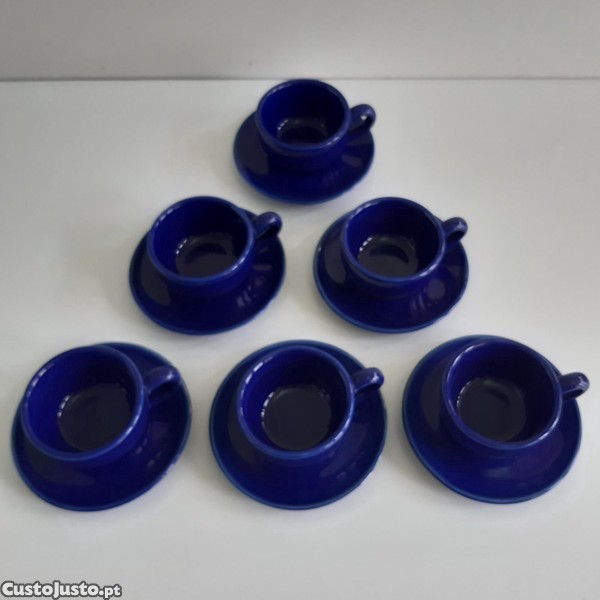 Conj. Café Loja Habitat 6 Chávenas 6 Pires Porcelana Azul Marinho