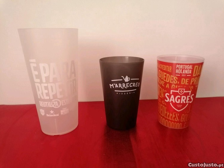 Preço: 6 €Conjunto de 3 copos em plástico, Sagres, Marrecreo, Reutilizável com várias marcas de cerveja