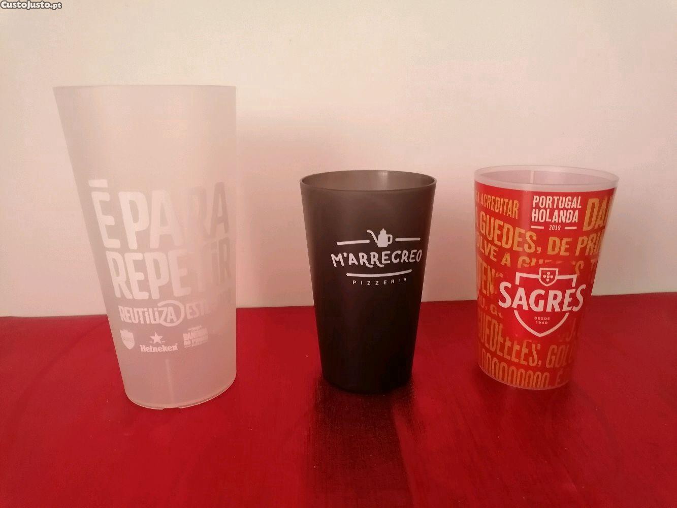 Conjunto de 3 copos em plástico, Sagres, Marrecreo, Reutilizável com várias marcas de cerveja