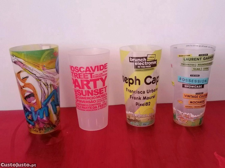 Conjunto de 4 copos em plástico de festivais.