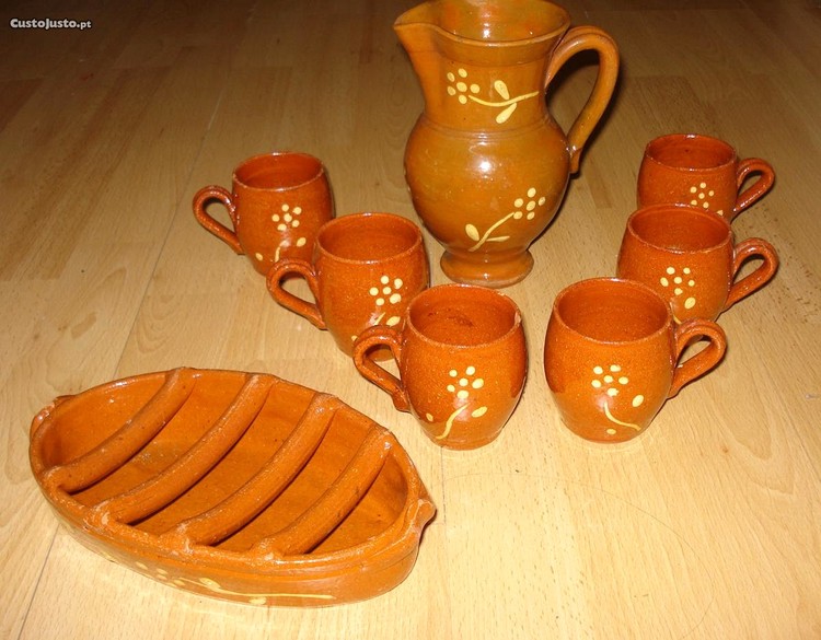Preço: 10 €Conjunto de canecas, jarro em barro e assadeira