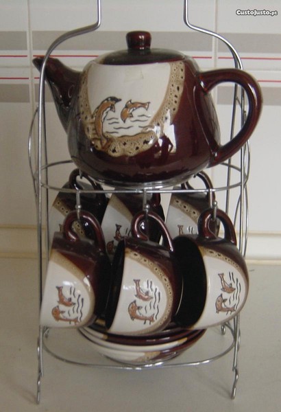 Preço: 30 €Conjunto de chá em porcelana para 6 pessoas - Inclui suporte cromado