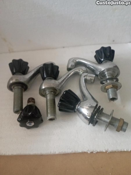 Conjunto de torneiras usadas, 4 simples e uma de passagem.