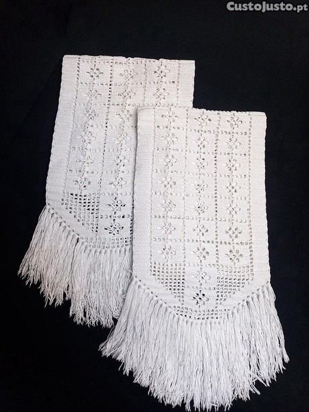Par de Naprons em Renda de crochet, feita à mão, em Algodão com Franjas