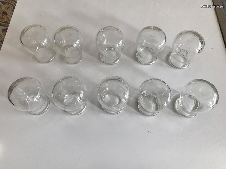 Vendo set de 10 Copos de Vidro, muito antigos, para Ventosaterapia. Como novos. Portes não incluidos, e por conta do comprador. Entrego em mão na zona de Lisboa.