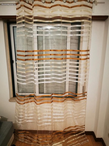 Preço: 10 €Cortinado Transparente com riscas Beje e Branco