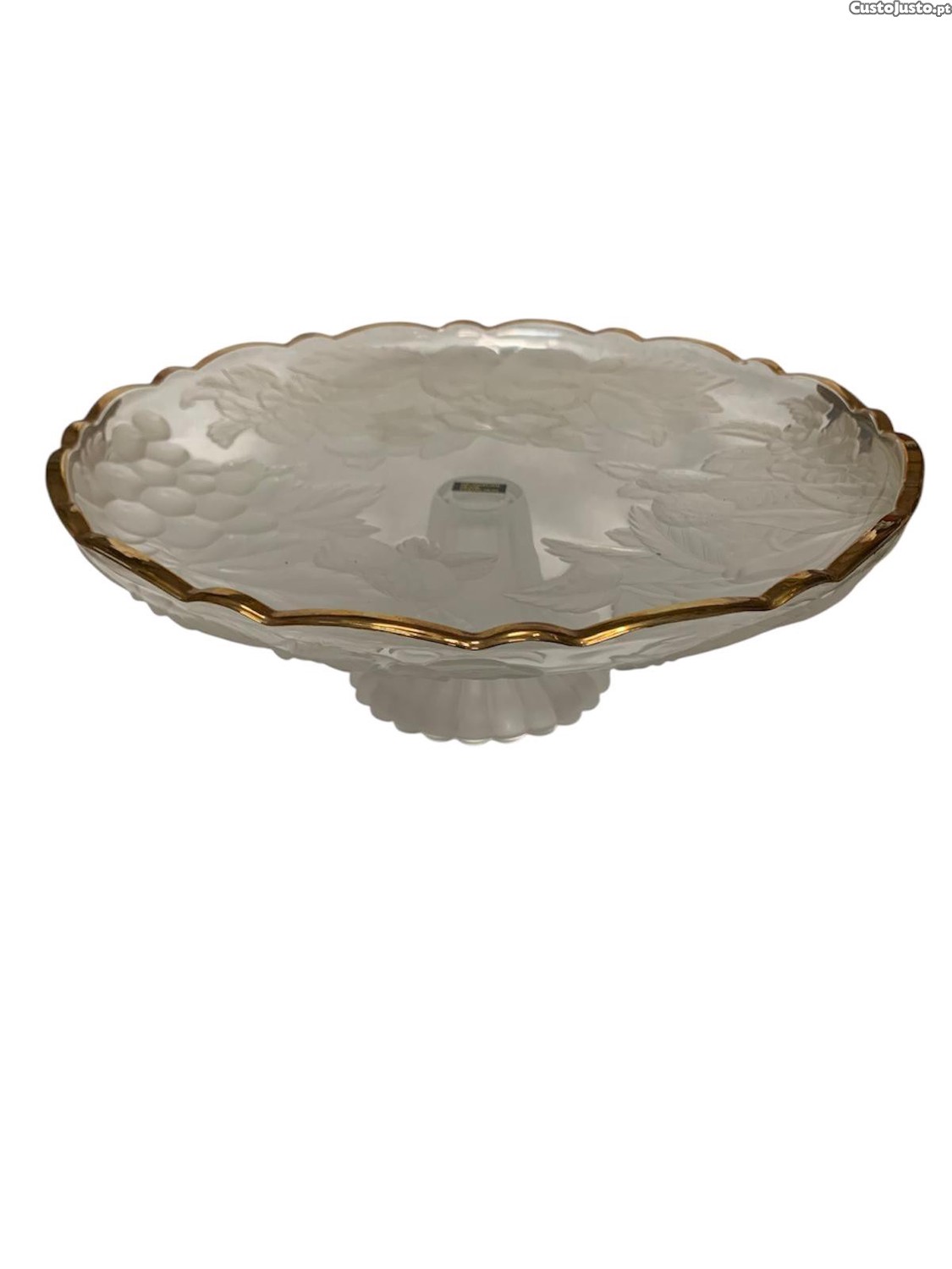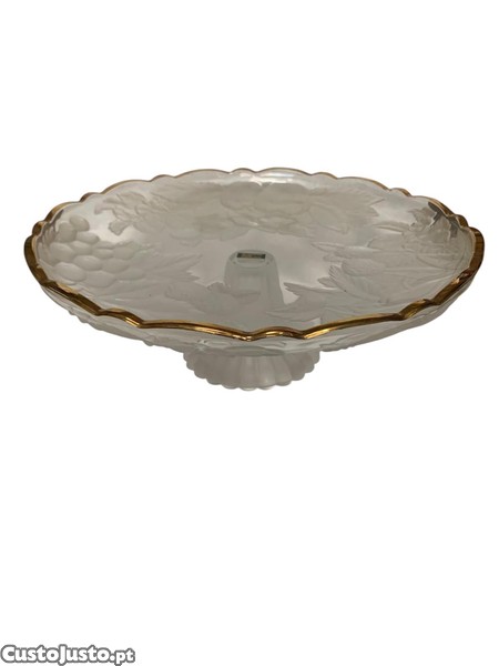 Preço: 30 €Fruteira em cristal nova com a borda dourada, sem uso.