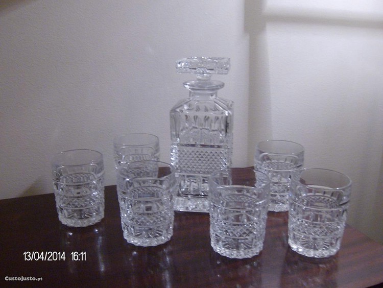 Preço: 50 €Garrafa com 6 copos de whisky em cristal da Boémia