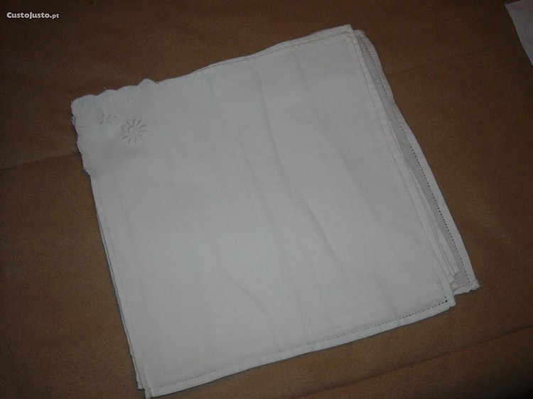 Guardanapos antigos em estado novo, executados em linho fino com bordados feitos á mão